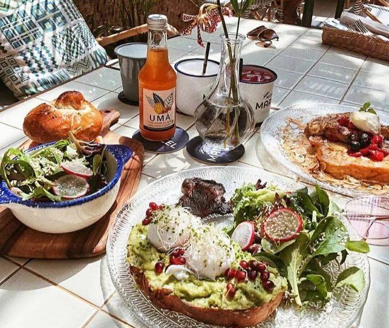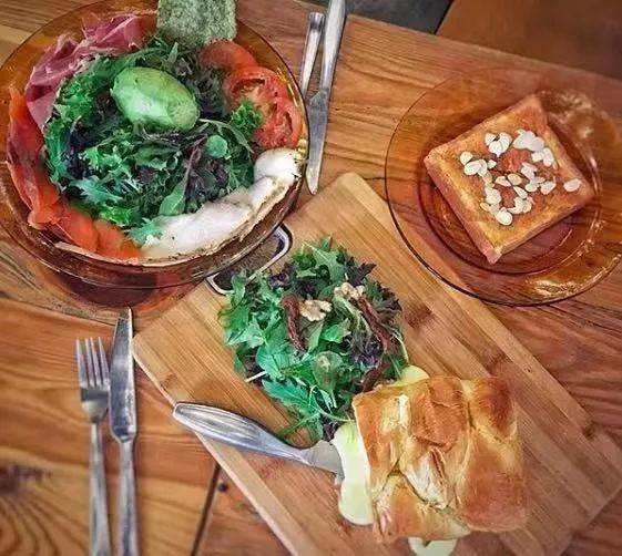 这里的食物,随便拍都是一张ins网红照,摆盘精致,而且颜值与味道共存。每一道菜都是经典,比如牛油果吐司,微焦的吐司,抹上厚厚的一层牛油果,流动的蛋黄,软弹的感觉。