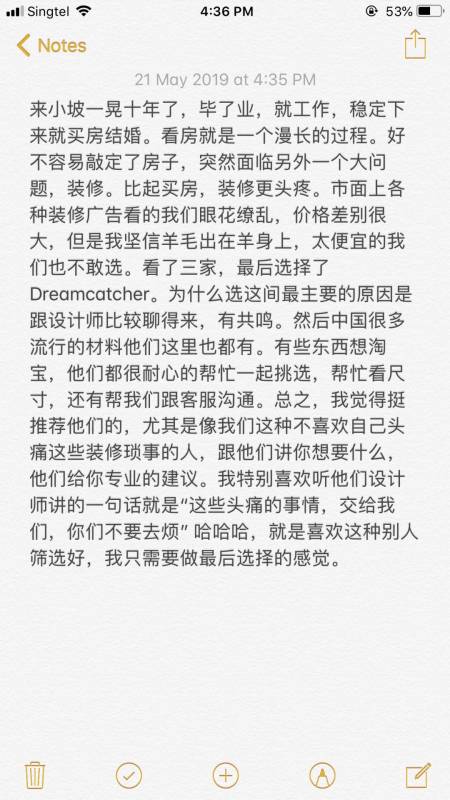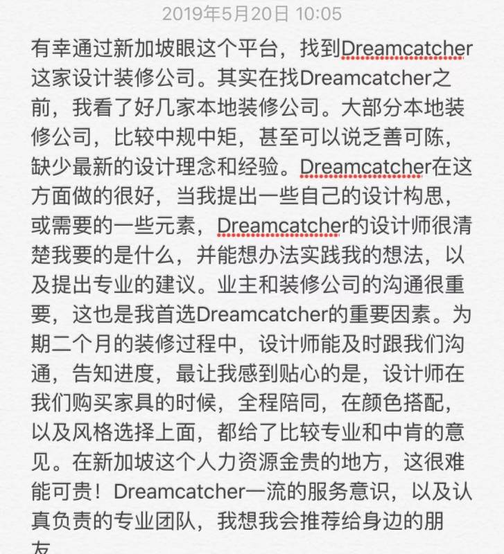 Dreamcatcher过硬的家装技术、优质口碑,不断得到屋主好评。