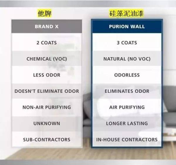 对比他牌,涂料层次更多、完全纯天然,不仅无臭味还能达到空气净化,时效寿命更长。