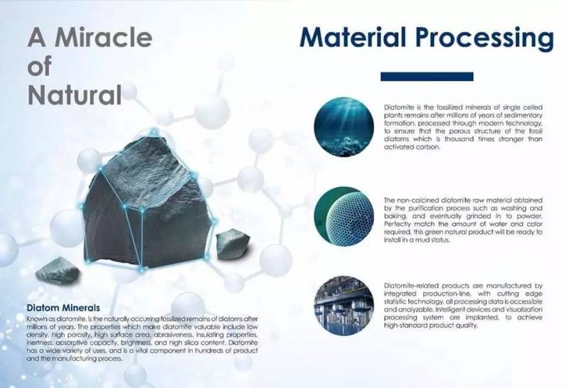 硅藻土,是经过数百万年的硅藻化石残骸沉淀而成。通过现代智能技术加工,确保化石硅藻的多孔结构比活性炭强一千倍,净化效能更是卓越。