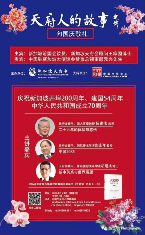 郑永年是新加坡天府会顾问,8月4日,他将与另外两位顾问举办讲座,向听众分享“天府人的故事”。同时在讲座上,郑永年教授将为其限量版新书《大趋势 中国的下一步》签名。