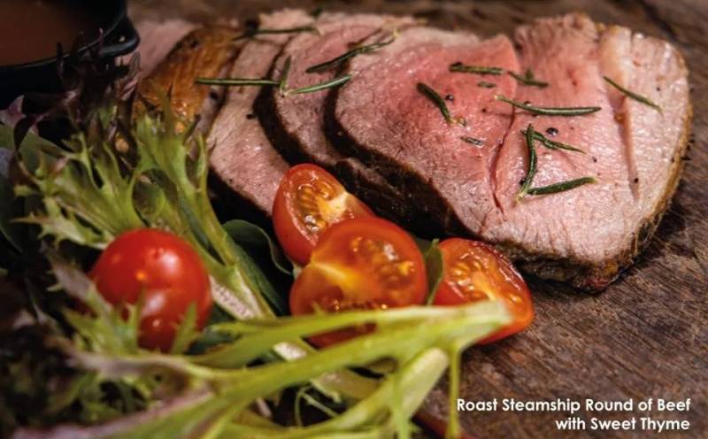 还有这一款烤牛肉,强烈推荐。牛肉在80度下缓慢烹饪20小时来融化甜甜的百里香,肉质既柔软又美味,而且牛肉是在三天前调味,让腌制品充分渗透到肉中。