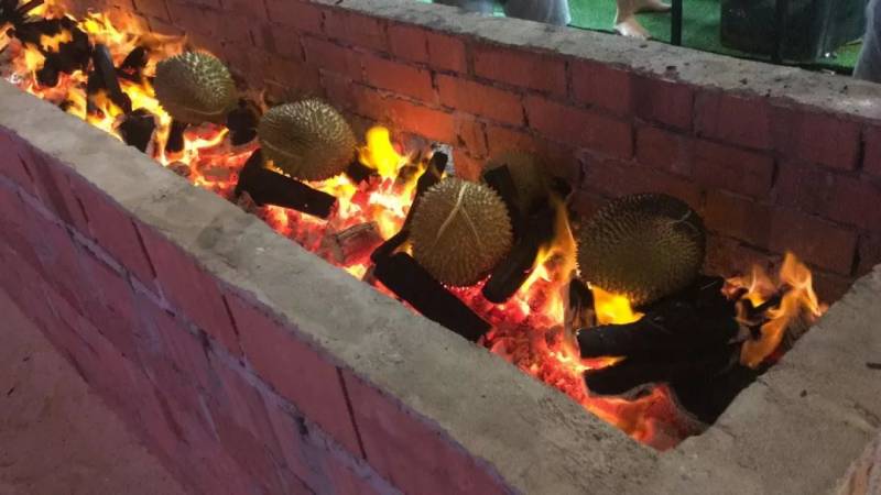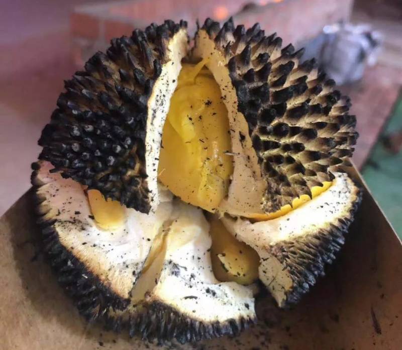 不用专门跑去泰国,这里也可以吃到烤榴梿啦。品种有特级猫山王、猫山王和D13可以选择。脱水后的榴梿质地变得更加柔软,有的果肉甚至已经粘在了果皮上。