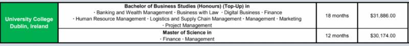 当然,由于新加坡只有为数不多的几所公立大学的选择,相当大一部分的学生最终都选择了本地的口碑良好办学历史的私立院校,比如JCU、Kaplan,PSB等等。以Kaplan的金牌合作院校课程爱尔兰都柏林大学(QS排名185)为例,其一年的学费在两万新币左右,如果想要衔接硕士课程,只需要一年的时间就可完成,无论是从金钱还是时间上来说都十分划算。