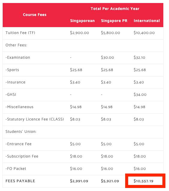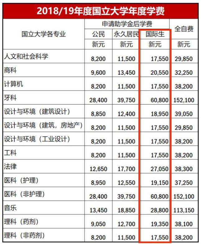 以国立大学为例,国际学生的学费一年在两万新币上下,特殊领域专业像法律和医学会高昂一些。