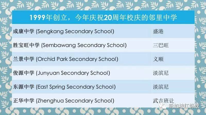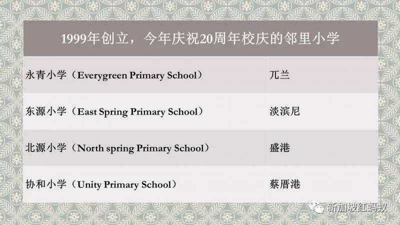 别看新加坡建国历史只有短短54年,今年庆祝20周年或40周年校庆的中小学却不少。红蚂蚁的小伙伴们在网上咬了咬,咬来了以下名单。虽然未必齐全,却也能看出轮廓。蚁粉们的母校有在这里吗?