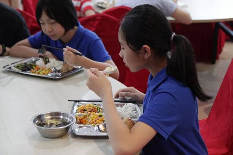 广告食堂每日按时提供三餐,荤素合理搭配,营养均衡,主厨及时更换菜式,让学生有新鲜感,促进孩子的食欲。