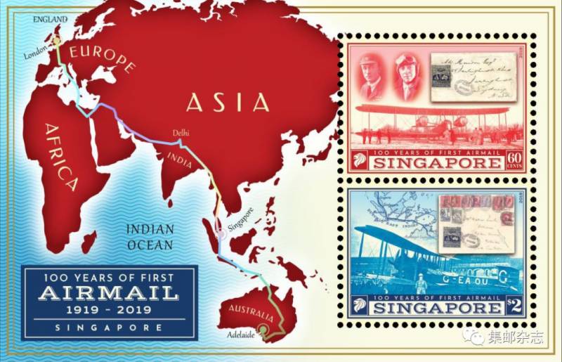 新加坡邮政特别发行纪念邮票一套2枚,小全张一枚纪念本次邮展。同时还发行自动化邮票一套1枚。纪念邮票和自动化邮票图案均为1919年由英国架飞机飞往澳大利亚的史密斯兄弟。这次飞行在飞机上携带了364封信件,其中有11封是寄往新加坡的邮件。新加坡邮政将本次航行作为本届邮展的主题。