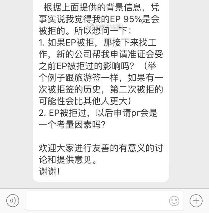 有网友说,就算EP被拒对将来申请pr没有影响: