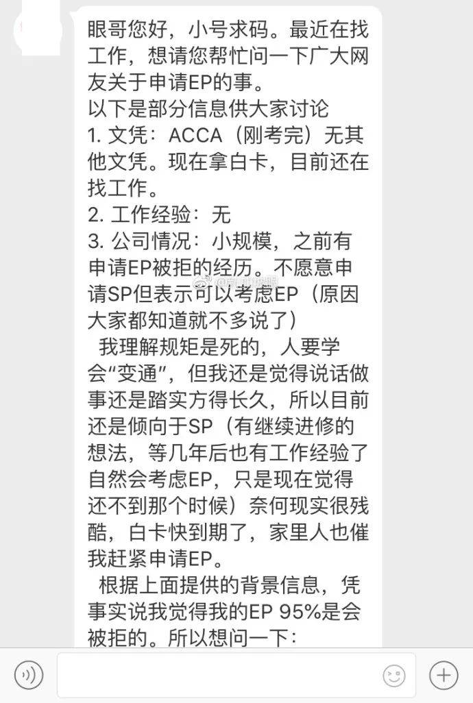 申请了再说,想太多也没意义,你自己都说白卡快到期了,放弃这个你能不能在短时间内确定新的下家也是个问题,所以纠结啥呢……EP申请不批一般是公司的问题,和个人没什么太大关系,不过就算有影响,你现在也没太多的选择余地了,不如先让公司申请再说,除非你觉得短时间内能找到个愿意申请SP的公司,不然就不用纠结了。