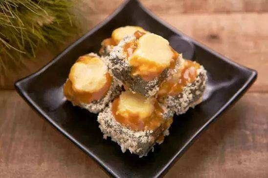 揉碎的榴梿肉,加上一点芝士,包成饺子,完全颠覆了传统,也许以后,饺子界也要开始争论甜和咸的问题了。