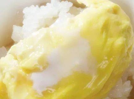 榴梿配饭,死而无憾。把榴梿肉捣碎,直接盖在米饭上,摆盘配菜什么的都是浮云,一碗榴梿盖浇饭就是这么简单任性。我们不禁灵魂中发出一声呐喊:为什么不直接吃榴梿~~