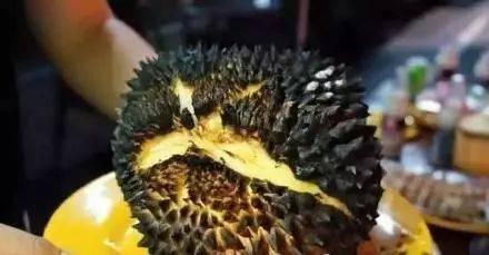“丧心病狂”地将整只榴梿放在火上爆烤,直到烤到炸裂开口,浓郁的香味飘散出来,里面的果肉烤的特别软,还得拿勺子才能吃~~