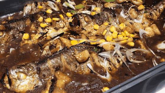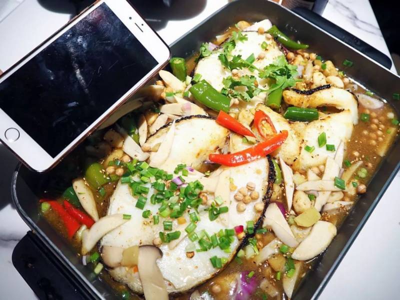 因为加入了秘制的汤底,所以鱼肉更加的入味,有一种特别的酱香味,用筷子翻开,嫩滑的鱼肉就蹦了出来,鱼肉外焦里嫩,非常入味!用入口即化来形容黄花鱼肉再适合不过。极速的烤制让鱼皮变得焦粘,而黄花鱼肉却保持了原有的水分,口感柔软像是豆花。小编表示没有吃过这么嫩的鱼肉!