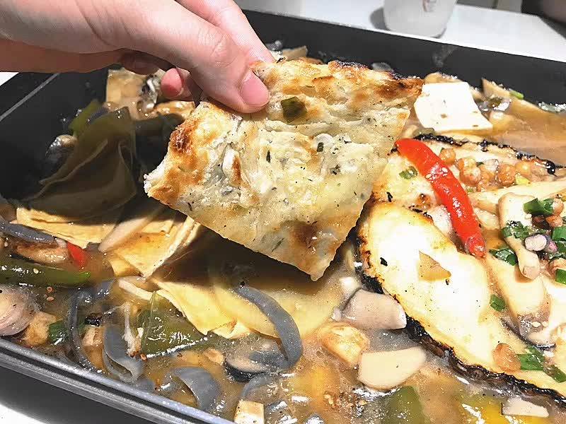 吃完烤鱼,加入熬煮的鸡汤,烤鱼化身为火锅!几十种配菜,绝对不输给火锅店!汤汁中带着鱼肉的鲜香,咸中有味,让配菜也也变得滋味无穷。