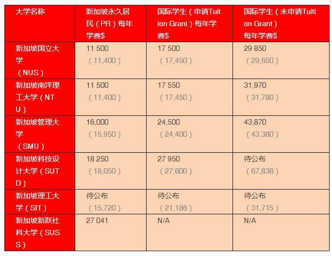 新加坡国立大学(NUS)、新加坡南洋理工大学(NTU)、新加坡管理大学(SMU)和新跃社科大学(SUSS)的公民学费增长$50,新加坡科技设计大学(SUTD)则增长$150。新加坡理工大学(SIT)目前还没公布涨多少。