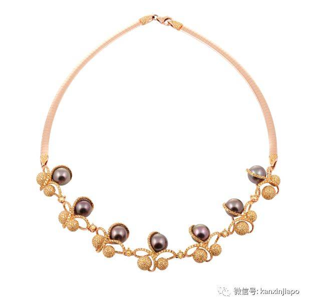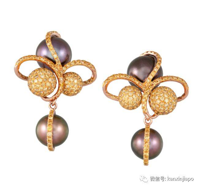 安昌的Nocturne暮色之颂系列的饰品以玫瑰金搭配南洋黑珍珠,再以小颗钻石画龙点睛。