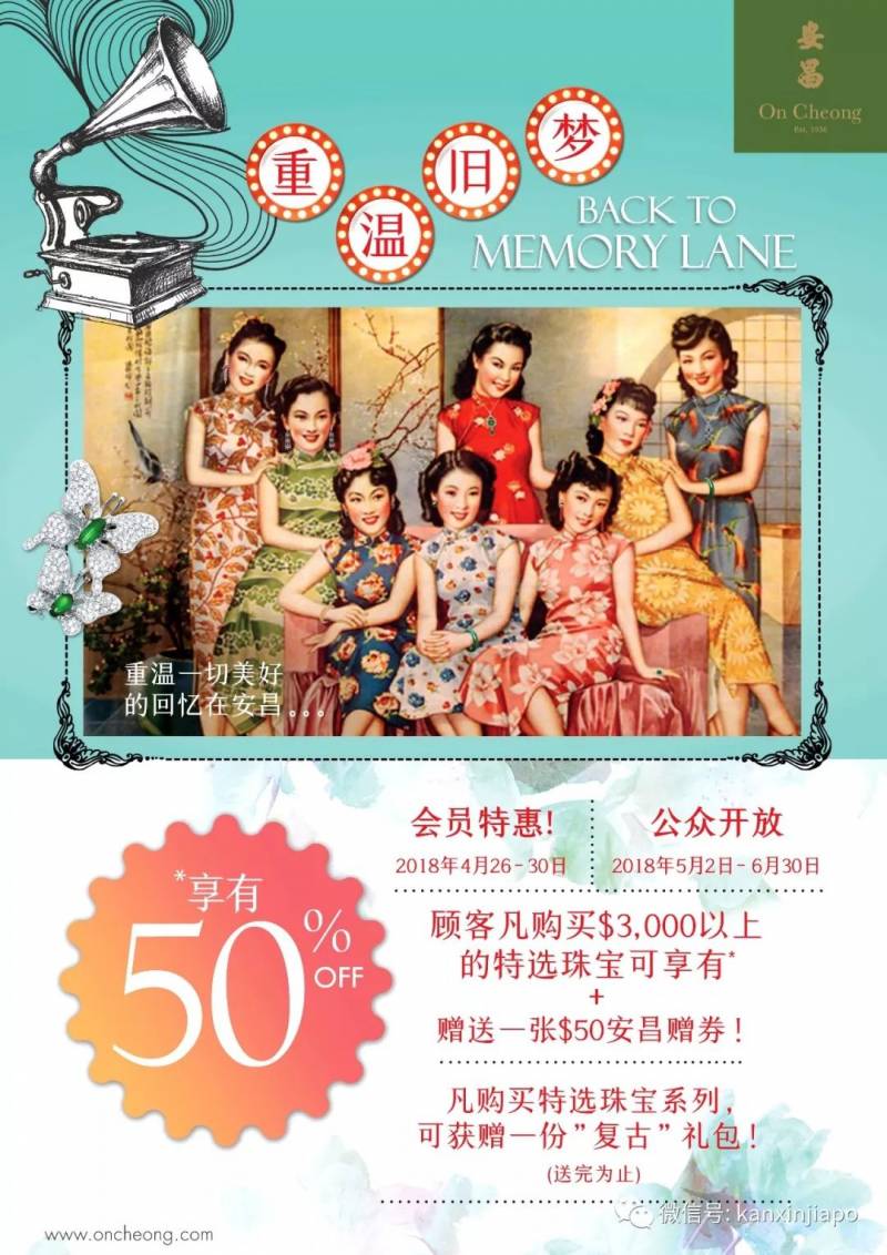 消费S$3,000或以上将可享有50%* 的特惠折扣,附赠一张$50赠券,可在购买下一件特选珠宝首饰时使用。