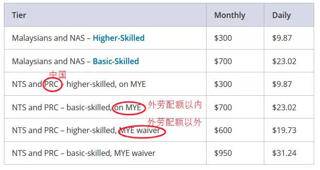 WP的外劳税和人头配额,涉及到行业分类比较细,分为建筑、制造、海事、加工、服务业五个行业。