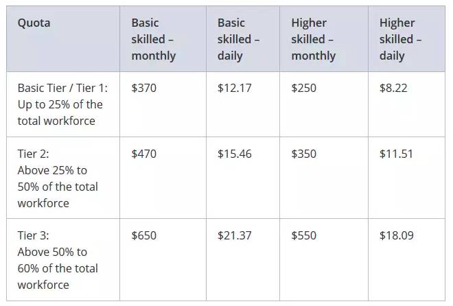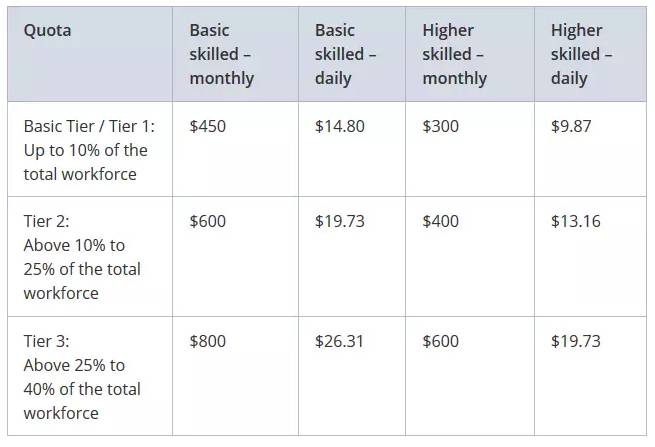 quota和外劳税如下图所示: