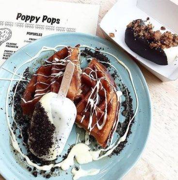 选好你喜欢的冰棒口味,dip在巧克力酱中,再撒上一层果仁碎,搭配上热乎乎的华夫饼,冰火两重口感。