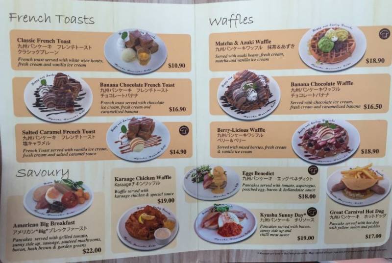 菜单选择很多,最多种类也最受欢迎的当然是松饼啦!有甜的咸的各种口味。除此之外,还有各种华夫饼、法式吐司、沙拉等,不定期还会出各种季节限定口味。