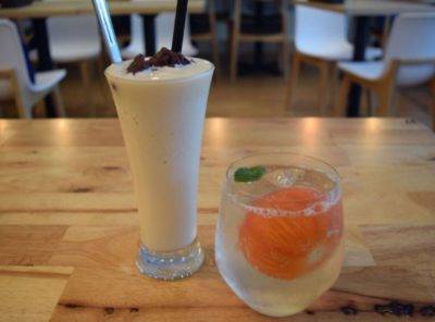 真的有一整个番茄的气泡饮!把番茄微微搅烂之后喝起来有淡淡番茄味,很惊艳!喝完还能吃一整个新鲜番茄。