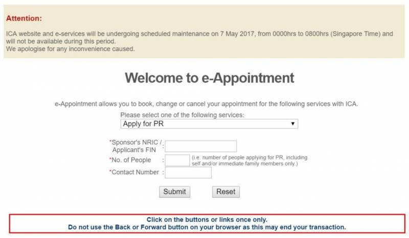 登录ICA网站 https://eappointment.ica.gov.sg/ibook/index.do,选择Apply for PR