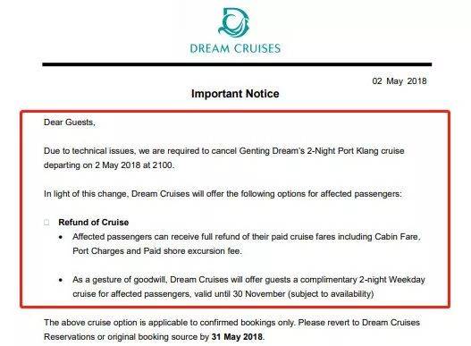 因发生技术故障,从新加坡出发的云顶梦号游轮临时取消,上千人受影响!