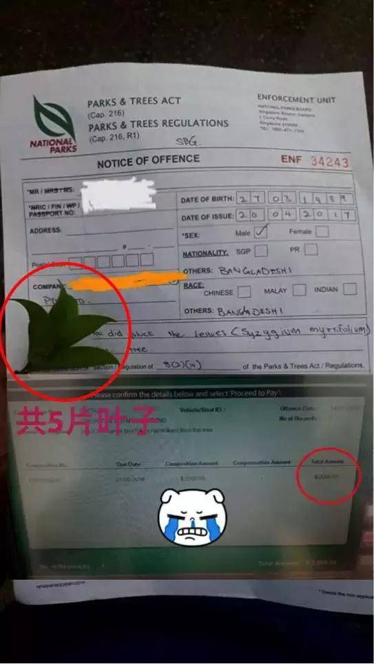 广告直到大家看到这位28岁的孟加拉小哥在网上晒出的罚单才信,是的,就那么一小撮,5片叶子,被足足罚了2000新元!