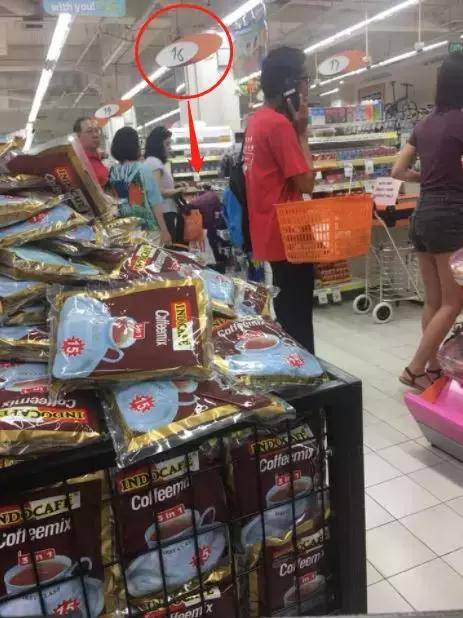 她的儿子在靠近16号柜台的地方玩耍,而她在18号柜台排队。当时她老公站在儿子背后。