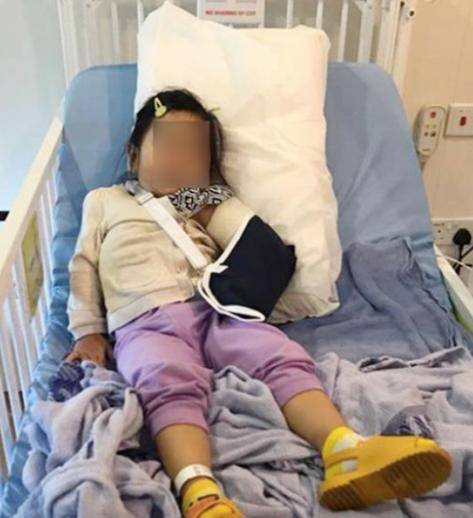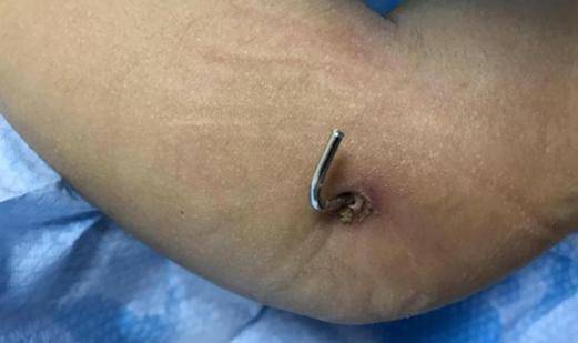 如今,女孩的左手臂凸出了两条铁线,以固定住骨头,之后还要包扎多一个月。看着就觉得可怕……