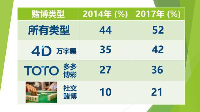 参与赌博活动整体比率增加,主要是因更多人投注万字票、多多和进行社交赌博导致。