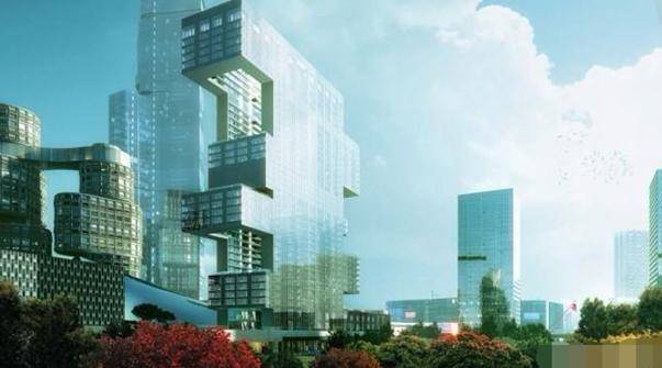 例如这座“古怪”的大楼,将造型发挥到了极致,远看就像是一个个四方形盒子叠在上面。