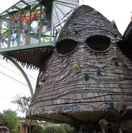俄亥俄州辛辛那提市蘑菇房,外形怪异的建筑就好象是由波浪形的木料和一大堆杂乱的材料粘合在一起形成的,看起来像是蘑菇。看上去倒有童话世界的感觉。