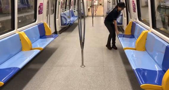 据说,凳子会由工作人员根据当时的人流量进行控制凳子是打开还是关闭的状态,而每一辆列车大概会有12张这样的椅子。