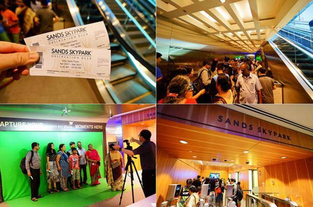 最后给大家介绍一下入场的步骤吧~首先大家可以到新加坡的旅行社或者直接用万能的淘宝,购买门票(到场购买也可以,不过要排队,而且价格好像也贵一点),然后找到Sands Skypark的入口处,排队验票,入场之前会有拍照区,如果喜欢的朋友可以上楼之后付钱就能拿到照片啦!