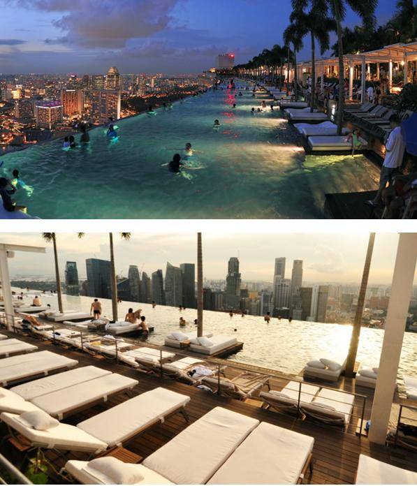 150 米长的泳池是全球最大的高空户外泳池,无边际设计令人炫目。不过泳池只对入住金沙酒店的人开放,持观光票到空中花园的游客可是不能畅游其中哦。