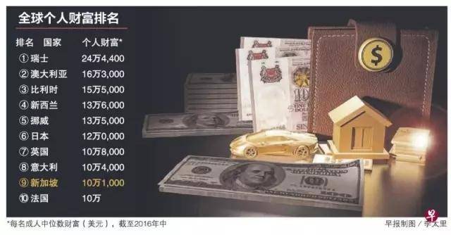 一份最新调查报告显示,尽管经济增长放缓,今年新加坡每名成人的中位数财富仍相当高,全球排名第九,为10万1000美元(约14万4000新元)。根据瑞士信贷(Credit Suisse)昨日发布的报告,每名新加坡成人的平均财富则增长1.4%至27万7000美元(约39万4600新元),亚洲排第一,在全球主要经济体排名第七。平均财富往往被超富裕人士的财富拉高,因此中位数财富可较准确地反映国人的财富情况。