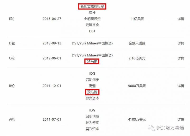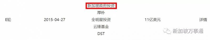 在投资公司的名单上我们看到了新加坡政府投资(GIC),GIC和厚朴、全明星投资、云锋基金、DST共投资了11亿美金!