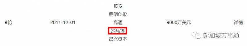 2011年,小米公司的B轮融资,在投资一栏中我们看到了淡马锡的身影,淡马锡和IDG、启明创投、高通、晨兴资本共投资了小米集团9000万美元!