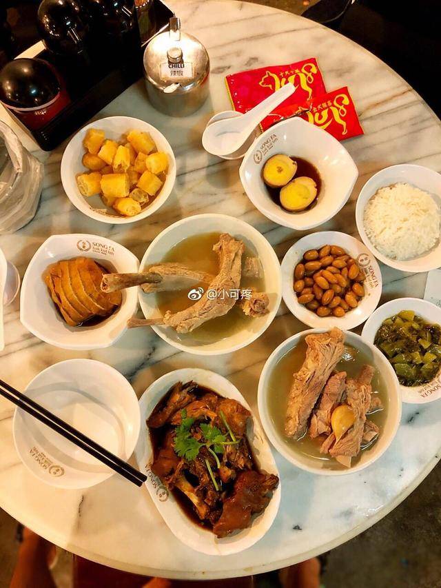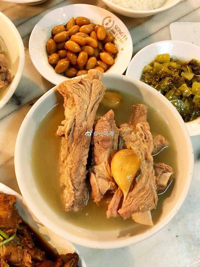 排队时已经点好单,所以一落座不一会就呼啦啦的上全了。菜品不多,主要是围绕着肉骨茶,肉骨茶有精品脊骨和普通的,感觉味道差别并不大,肉骨茶里肉骨炖的软烂,一吃就脱骨了,汤浓,加入了大蒜却没有什么大蒜的辛辣味,味道特别好,拌饭吃也特赞,这里的汤还可以免费续添的,超赞。