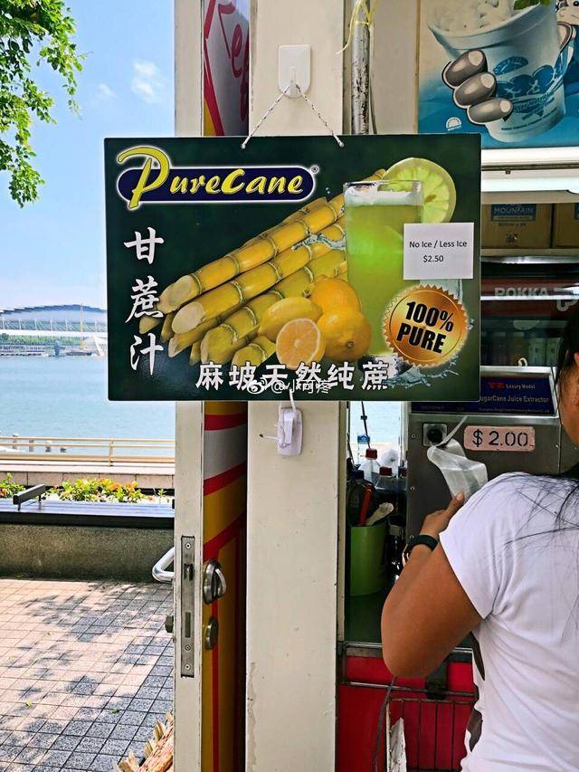 新加坡随处可见的鲜榨甘蔗汁,麻坡天然纯甘蔗,甜度超过,即便加了冰块也没有降低什么甜度。