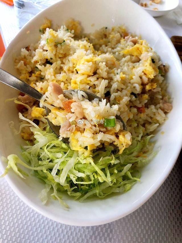 炒饭里的鸡肉丁去皮炒的嫩嫩的,咸鱼粒焦香。每一口炒饭都有咸鱼粒爆香在口中,真是太好吃了。