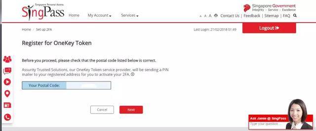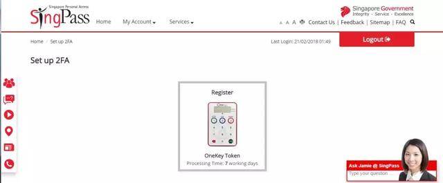 为了防止他人窃取个人资料,网站采取SingPass“双重认证”(2-Step Verification,简称2FA)机制。你必须输入两道密码,你自己设置的固定密码,还有通过密码生成器生成的一次性密码(OTP)。