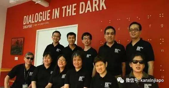 广告体验馆内所有的导游很多都是视障人士,这些导游的声音都很温柔很祥和,跟他们在一起这15分钟你会很有安全感。这个体验馆给不少视障人士提供了就业机会。其中非常值得一提的一位盲人导游,在新加坡还是小有名气,他就是第一届新加坡绝对superstar 的冠军,盲人歌手陈伟联。(下图后面左一)