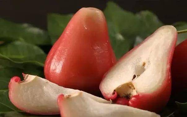 你是不是一眼就被它的颜值吸引了呢?粉粉嫩嫩,像个小铃铛。莲雾口感清甜带酸,还有着苹果的清香。这种性味甘平的水果很适应长期食用,不仅润肺,止咳,除痰还可以用来解酒,甚至还有安神的作用。
