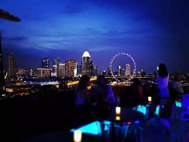 每当夜色降临,在高空餐厅的露台上,晚风徐徐,你可以架上脚架,拍摄华灯闪烁的新加坡夜景。有了这样的高空景致,大片还不是信手拈来~
