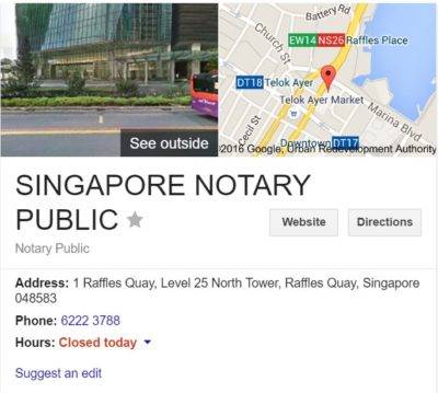 One Raffels Quay, Level 25 North Tower, Notary Public Singapore
