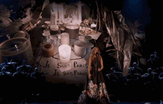 这是Celine Dion在2015年全美音乐奖现场为巴黎遇难者歌唱,唱到深情之处,令人动容。台下听众哭倒一大片。